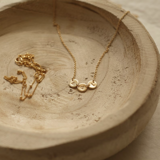Our Mika disc necklace can be personalized with an initial. This meaningful piece will be a good choice for those who like to avoid bar necklaces!